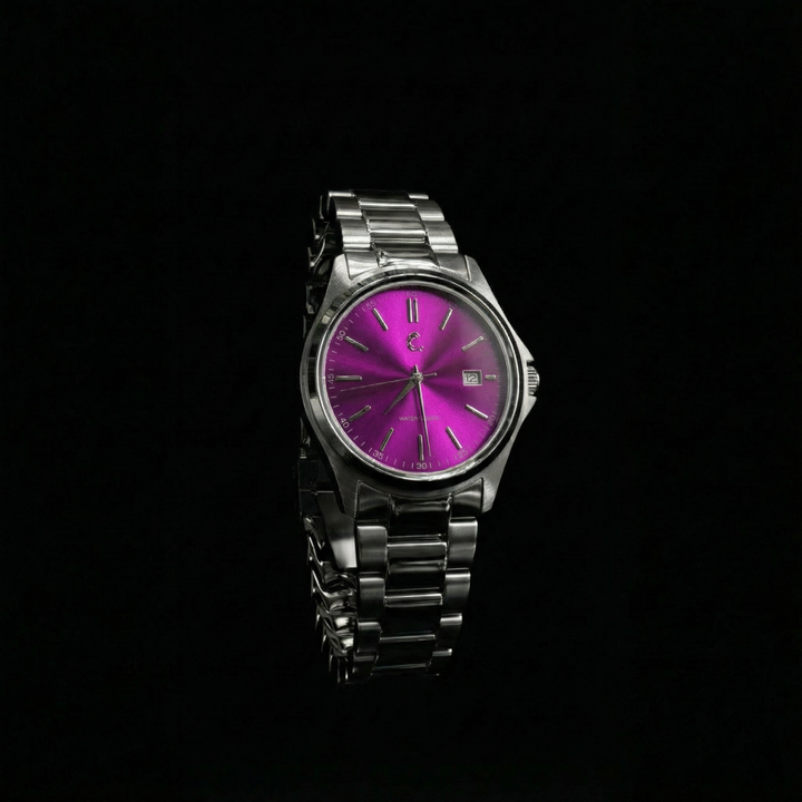 Make your mark with the Curated Chrome Amethyst. Featuring a vibrant purple sunburst dial that shines with every movement, scratch-resistant sapphire glass, and 50M water resistance, this timepiece is the perfect blend of style and resilience. Encased in polished stainless steel with precision Japanese Quartz Movement, the Amethyst delivers reliability with a touch of bold elegance. Engraved details on the clasp and case back add a refined finish, making it a standout piece for those who embrace energy and sophistication.