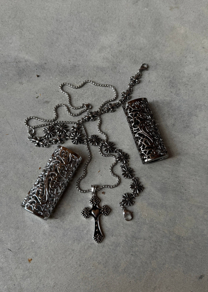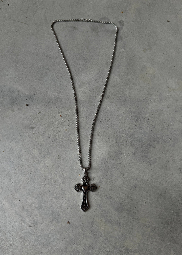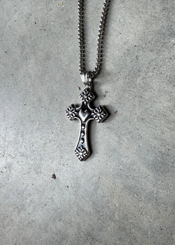 Elevate your accessories with the powerful presence of the floral cross necklace, a piece that balances softness and strength. This standout cross necklace in stainless steel adds depth and edge to your personal style. Complete the look with matching pieces from our chrome jewelry selection. As part of our signature line of stainless-steel accessories, this design delivers both meaning and aesthetic. Do not wait and order your floral cross necklace today.