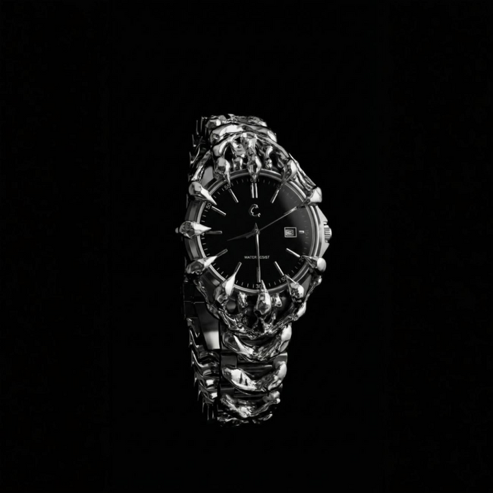 Elevate your style with Curated Chrome Abyss. Featuring a bold chrome skeletal design, a sleek sunburst dial, scratch-resistant sapphire glass, and 50M water resistance, this timepiece combines edgy artistry with premium functionality. Powered by reliable Japan Quartz Movement, it’s the perfect blend of precision and style.