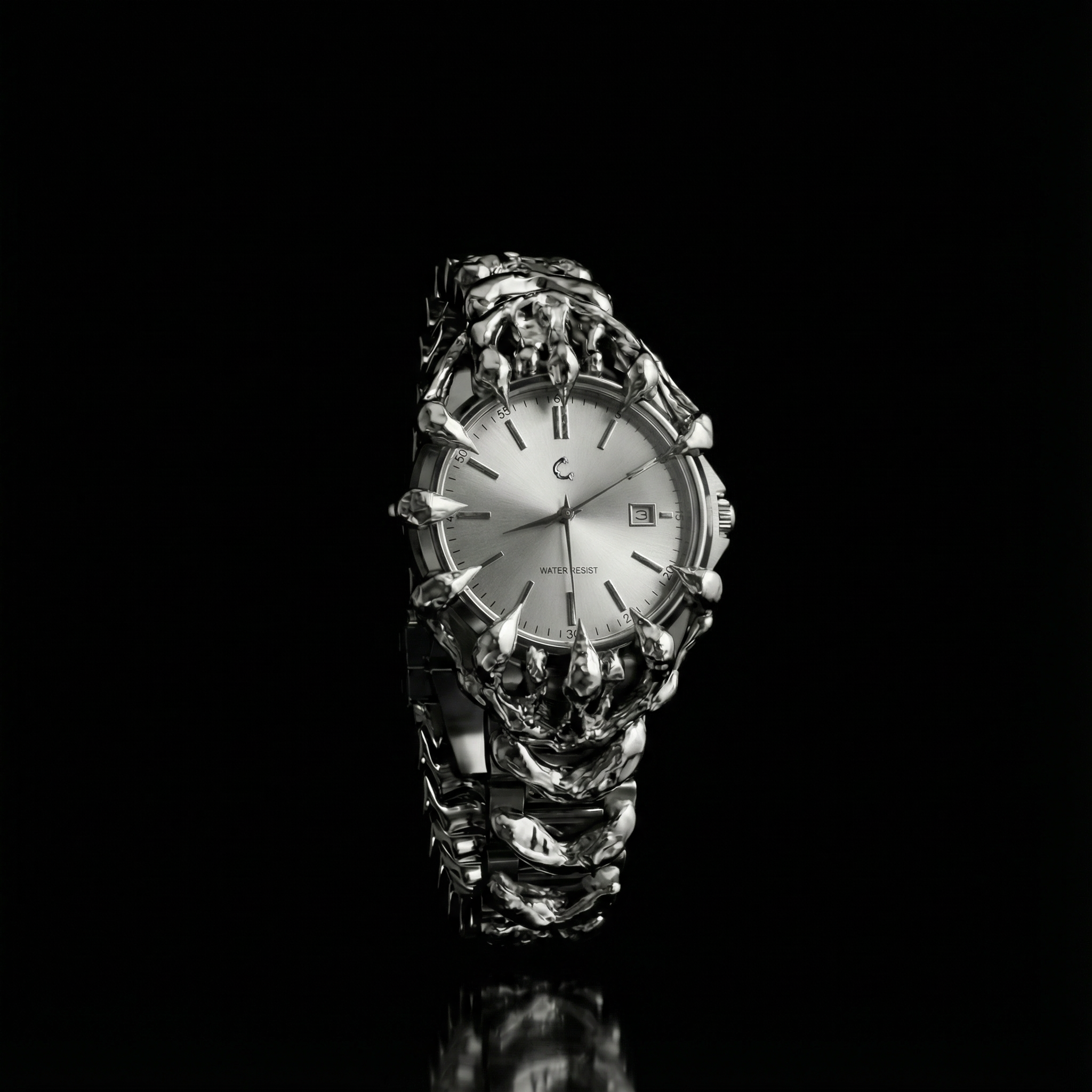 Elevate your style with Curated Chrome Eclipse. Featuring a bold chrome skeletal design, a sleek sunburst dial, scratch-resistant sapphire glass, and 50M water resistance, this timepiece combines edgy artistry with premium functionality. Powered by reliable Japan Quartz Movement, it’s the perfect blend of precision and style.