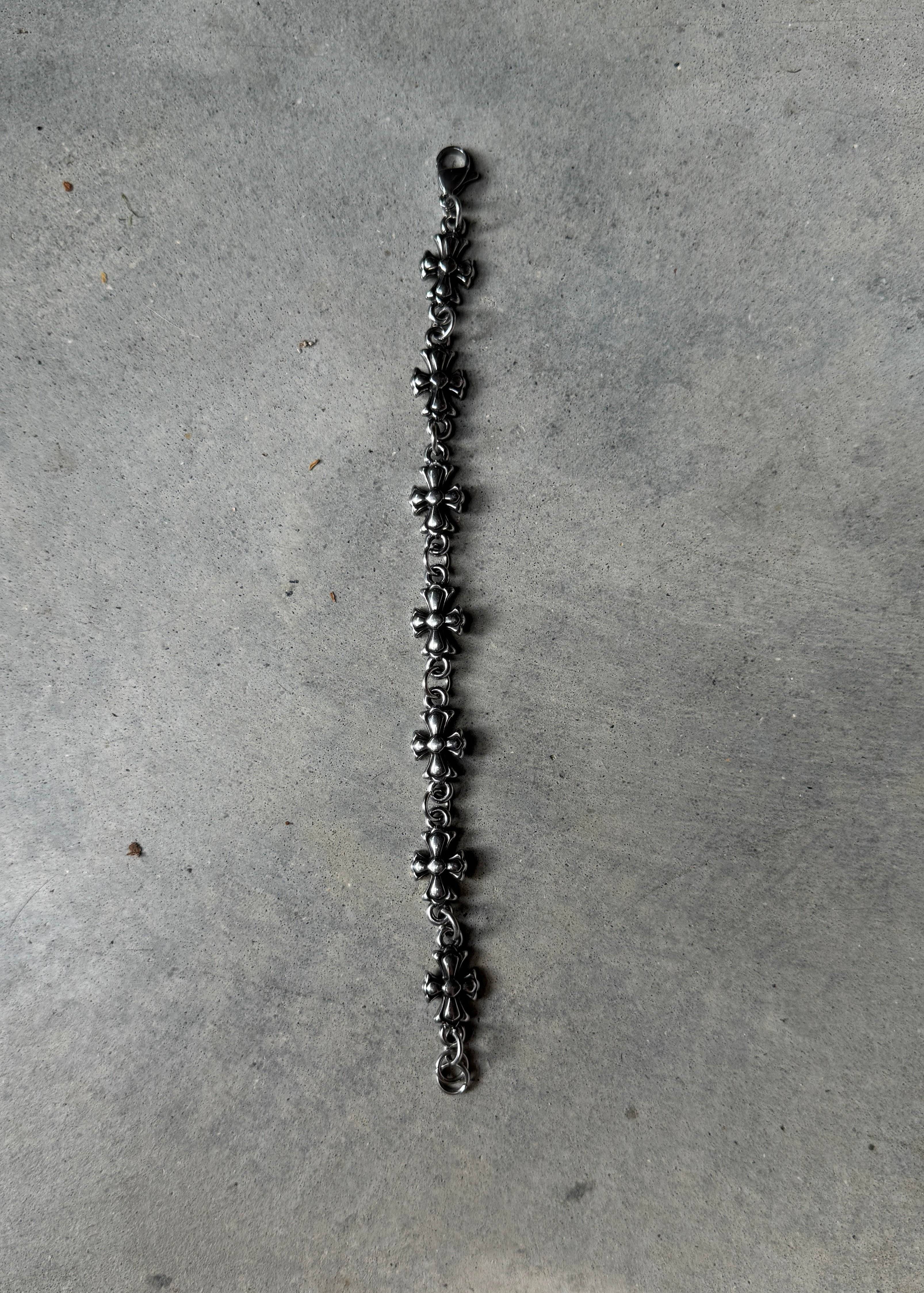 The floral cross chrome bracelet from Curated Chrome is a distinctive piece that blends bold design with intricate detailing. Crafted from durable stainless steel, this bracelet features a prominent floral cross motif, making it a standout addition to any jewelry collection. Its robust construction ensures longevity, while the polished finish adds a touch of elegance. The floral cross chrome bracelet embodies both strength and style.