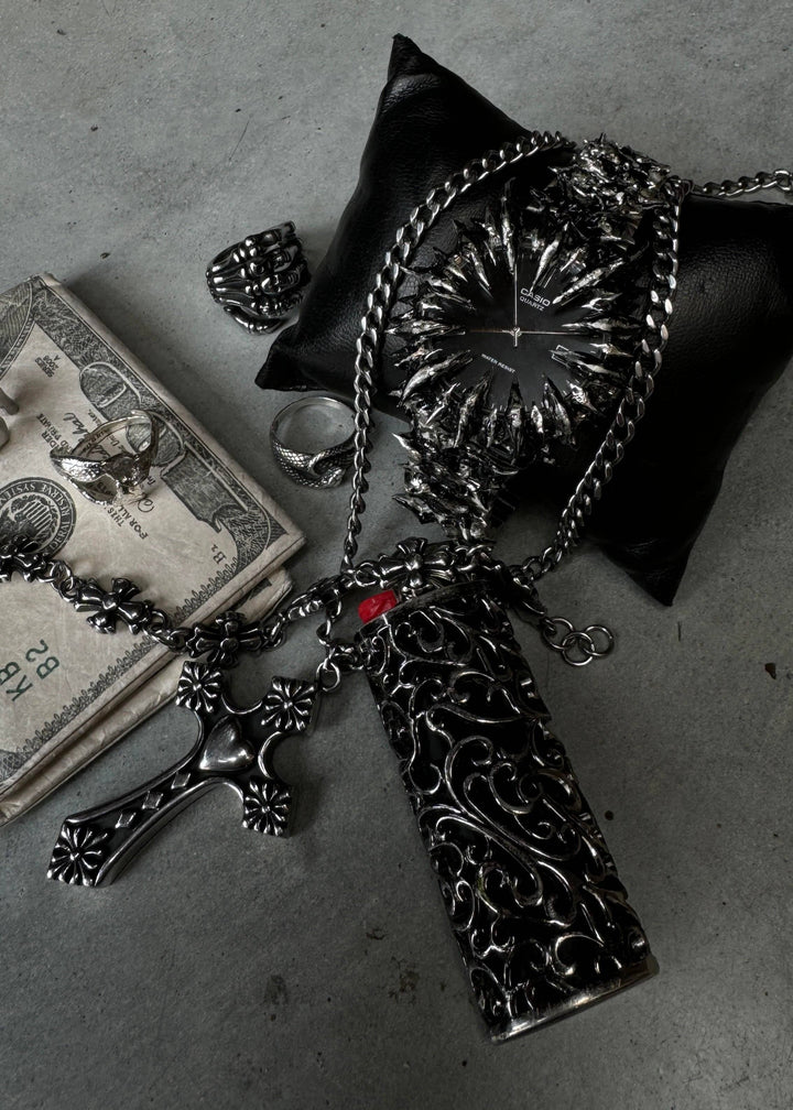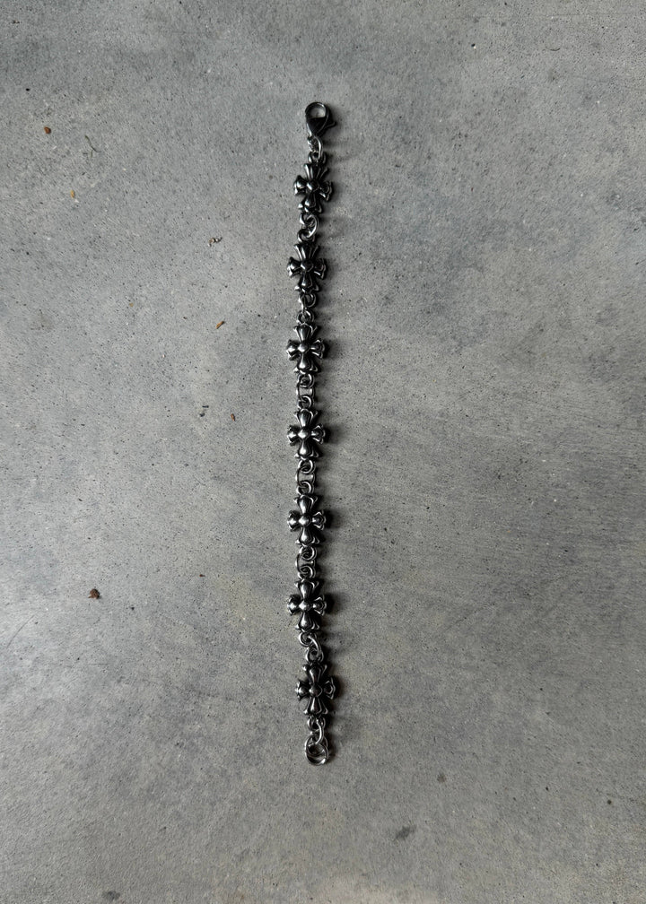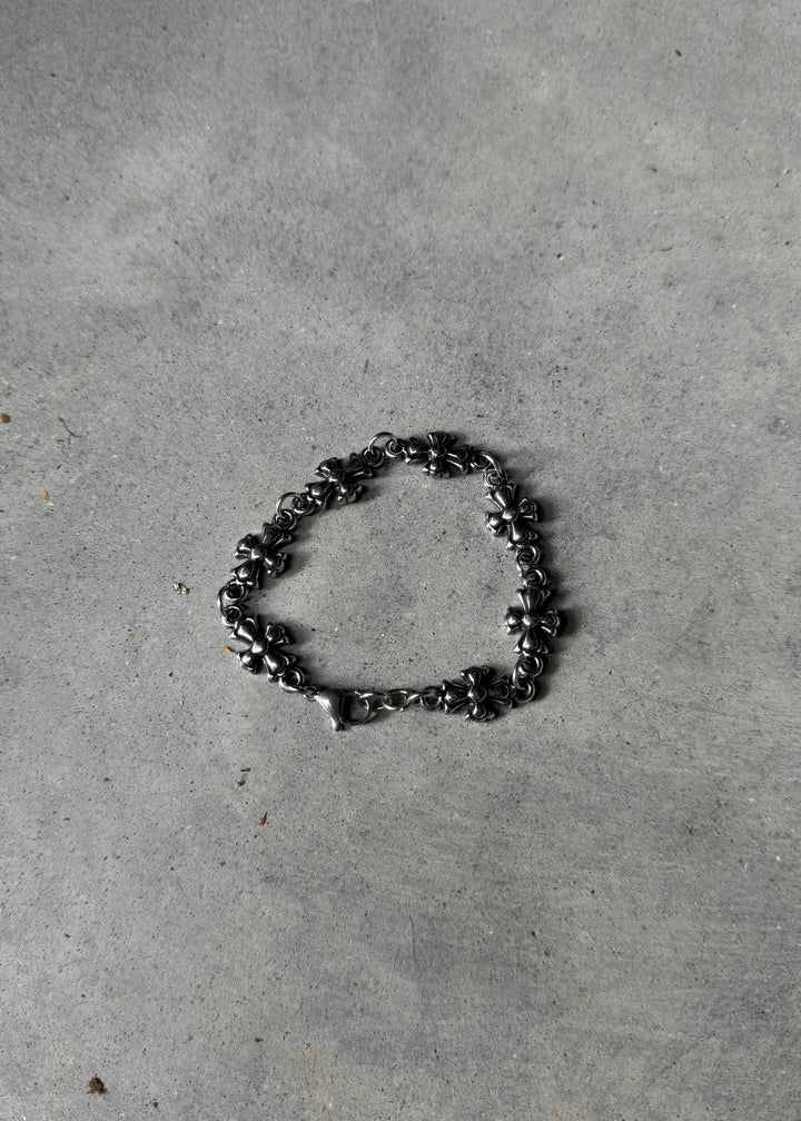 Elevate your accessory game with the floral cross chrome bracelet, a piece that seamlessly combines durability with distinctive design. This bracelet is a testament to the craftsmanship found in chrome jewelry. As part of our curated selection of stainless-steel accessories, it pairs effortlessly with other chrome jewelry and accessories to create a cohesive and striking look. Order your floral cross chrome bracelet today and make a lasting impression.