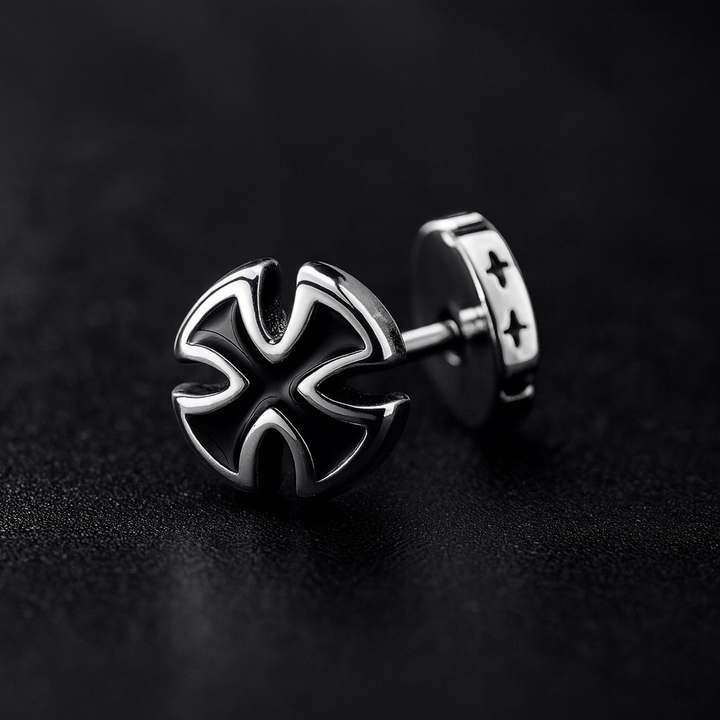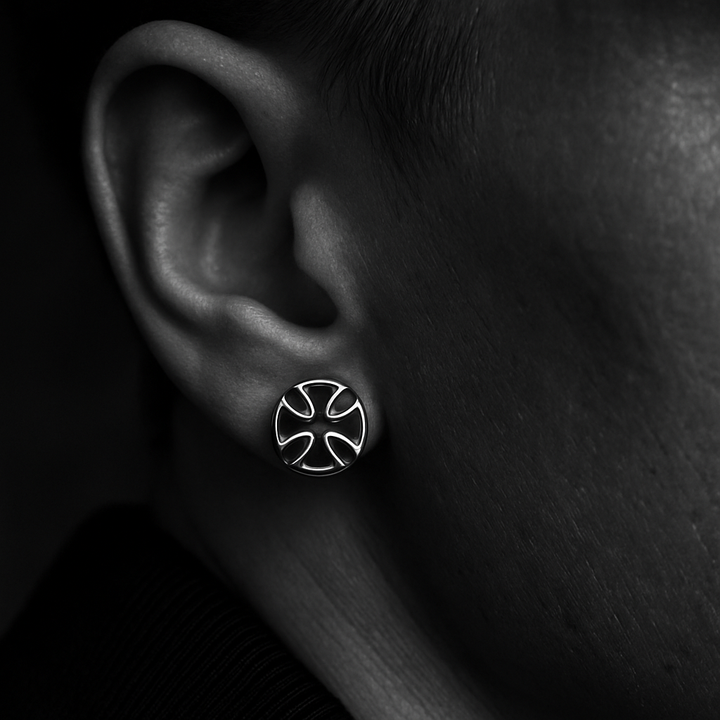 The Iron Cross Noir Earring is a bold expression of punk-inspired style and fearless individuality. Designed with a striking iron cross motif, this unisex stud combines raw attitude with meticulous detailing, making it a standout accessory for any look.