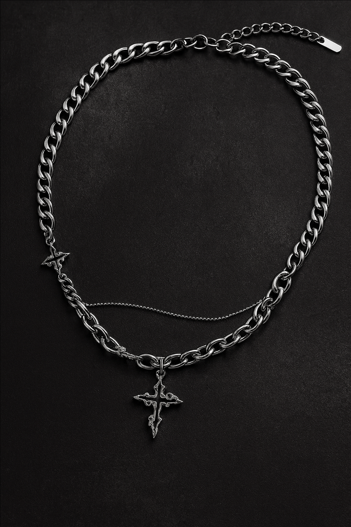The Obsidian Cross Necklace blends urban edge with timeless craftsmanship. Featuring a bold cross pendant, this piece symbolizes both strength and style, making it a versatile essential for any modern jewelry collection.