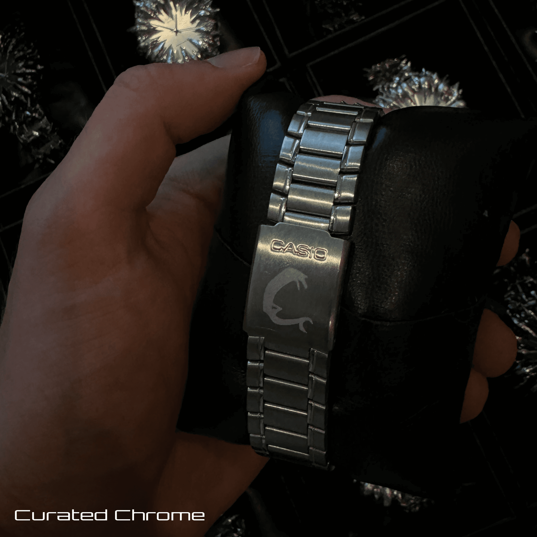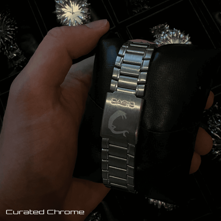 One of our best-selling Curated Chrome watches, the Midnight Thorn, features our unique spiked design paired with a classic complication.