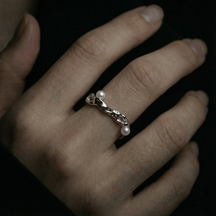 Curated Chrome sculptural open ring with organic lines and a refined chrome finish. A bold yet timeless statement piece, designed to be worn solo or layered for a minimalist look.